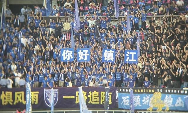 “苏超”第十轮,镇江队在主场迎战南京队。比赛开始前,南京球迷打出“你好镇江”标语。国是直通车 段修健 摄