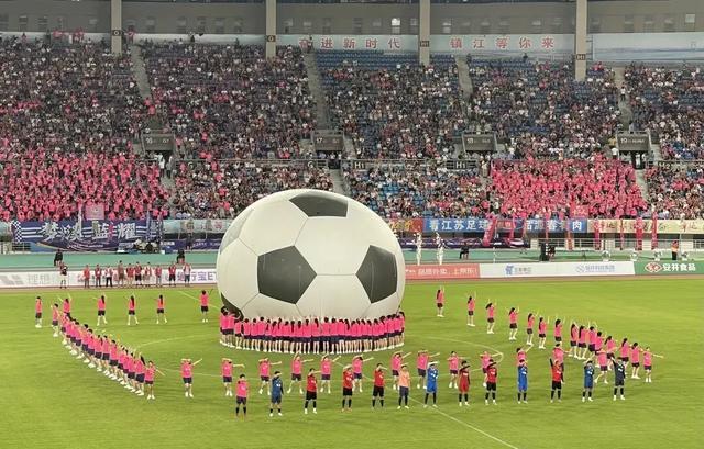 8月31日,“苏超”第十轮镇江队和南京队比赛开始前,球场进行文艺表演。国是直通车 段修健 摄
